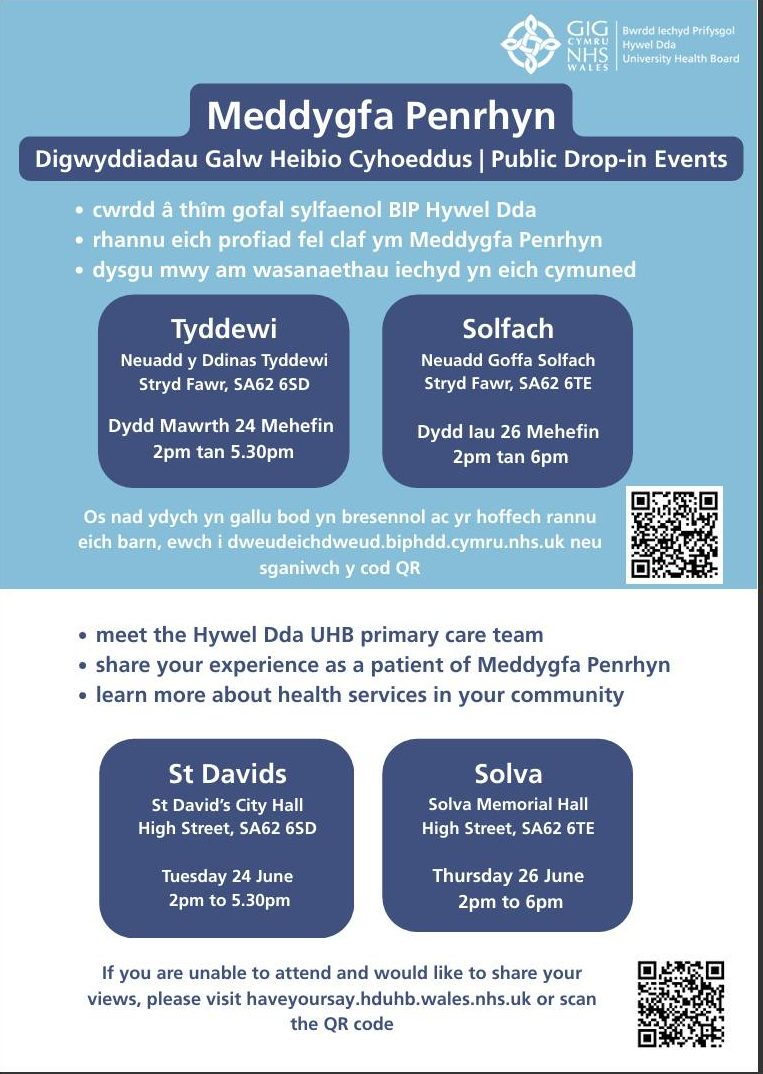 Patients of Meddygfa Penrhyn are invited to share their experience as a patient of their practice at drop-in events held by Hywel Dda University Health Board (UHB)