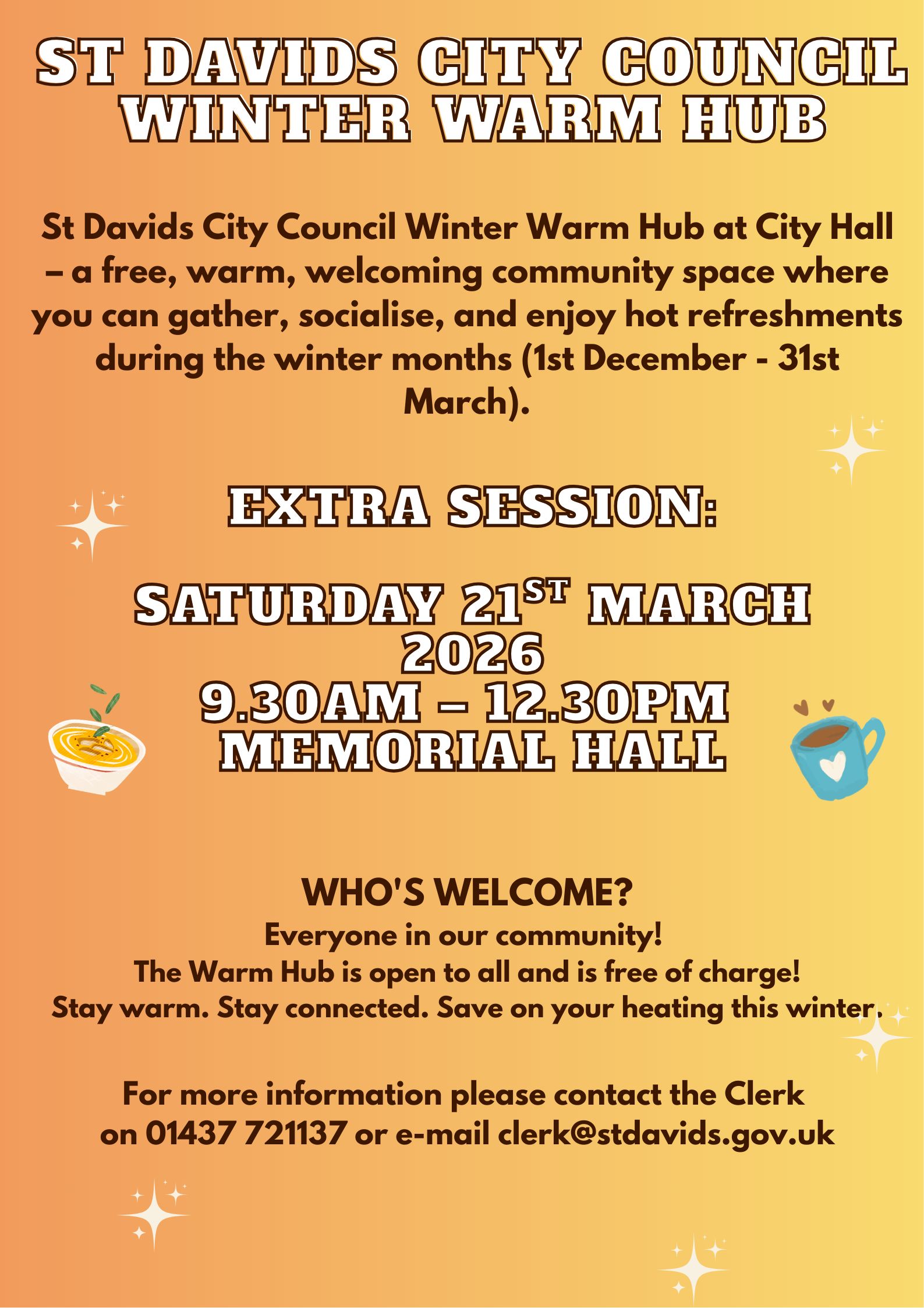 ST DAVIDS CITY COUNCIL WINTER WARM HUB – Extra Session